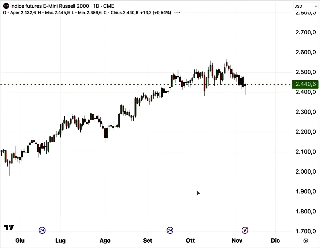 - Innanzitutto la stagionalità: siamo alla vigilia di fine anno, quando i grandi gestori di patrimoni misurano le loro performances per dedurne un premio di performance. Questo rende improbabile un ciclo ribassista che precede tale momento;