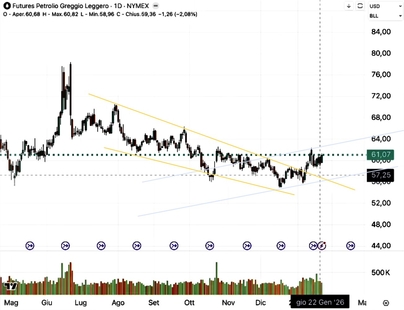 Con gli ultimi scossoni geo-politici stiamo quindi avvicinandoci a una possibile “resa dei conti” sui mercati finanziari che potrebbe contribuire non poco a definire il prossimo ordine economico globale, soprattutto attraverso una variazione significativa dei prezzi delle materie prime che non potrebbe non avere conseguenze sull’inflazione e, in ultima analisi, sui rendimenti dei titoli pubblici. Come peraltro si può già vedere nei due grafici qui sotto riportati, relativi all’andamento recente dei prezzi del petrolio e del gas: