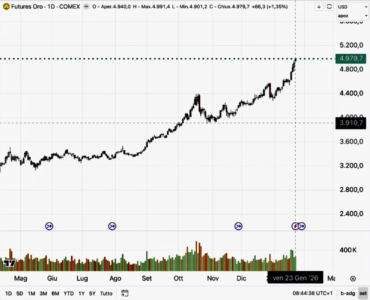 Il passaggio obbligato successivo è stato quello di deviare rispetto alla detenzione di riserve in Dollari da parte delle loro Banche Centrali, privilegiando in particolare l’Oro, le cui quotazioni sono ascese recentemente a quasi 5000 Dollari l’oncia.